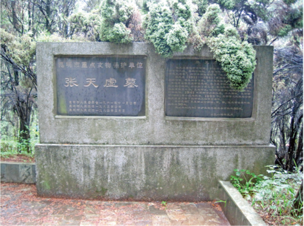 郭沫若先生為其作墓志,盛贊張?zhí)焯?,與聶耳相提并論為“西南二士”:“西南二士,聶耳天虛,金碧增輝,滇海不孤。義軍有曲,鐵輪有書,弦歌百代,永示壯圖”。
