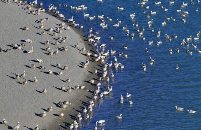 西藏雅尼國家濕地公園水鳥翔集(2021年2月2日攝)。