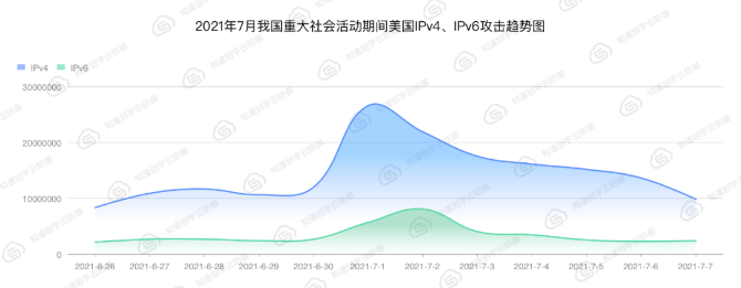 2.2021年7月我國(guó)重大社會(huì)活動(dòng)期間(6月26日-7月7日),來(lái)自美國(guó)的攻擊趨勢(shì)圖如下: