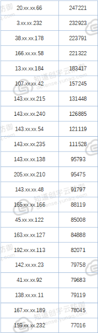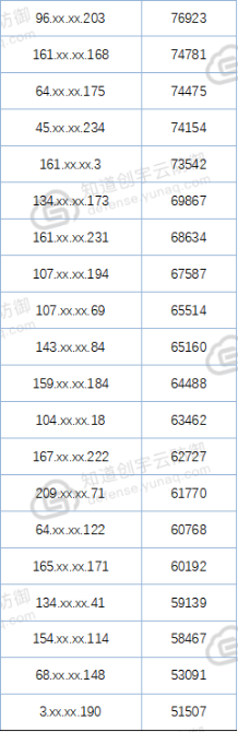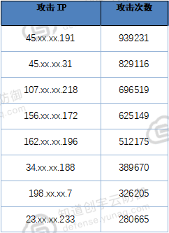 表1 攻擊IPv4 TOP 50(所有IP均來(lái)自于美國(guó)):