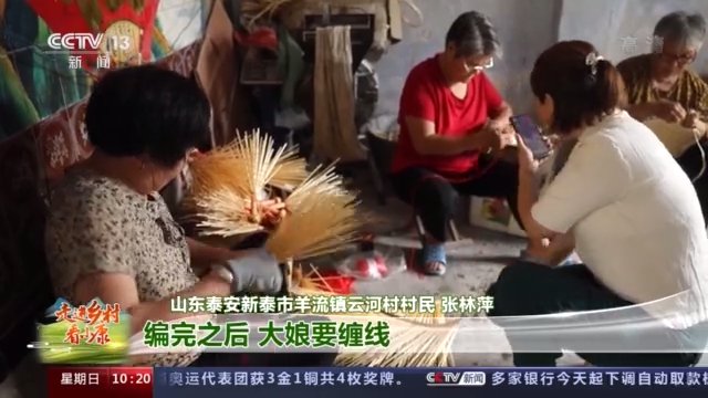 山東泰安新泰市羊流鎮(zhèn)云河村村民 張林萍:這個秸稈要編成這個樣子,編完之后,大娘要纏線。