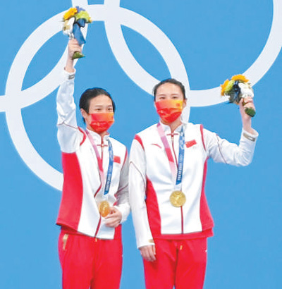 在跳水女子雙人3米板決賽中,中國隊選手施廷懋/王涵以326.40分的總成績奪得金牌,讓中國跳水隊在這一項目實現(xiàn)奧運五連冠。