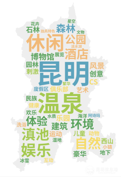 通過抓取昆明各大景區(qū)介紹,小明梳理出了相關(guān)熱詞并繪制詞云圖??梢钥吹綔厝⒌岢?、自然、休閑、森林被提及最多,體現(xiàn)出昆明是一座非常適合休閑度假的健康之城,森林康養(yǎng)項目十分火熱?!笆帧?、“阿詩瑪”、“獨具特色”也上榜熱詞,凸顯著昆明的少數(shù)民族文化特色。除了傳統(tǒng)文化,“冰雪”、“海洋”這類看似和春城不沾邊的詞也成了熱門,顯示出昆明近年來旅游產(chǎn)業(yè)更加的豐富,就算不出昆明,也能感受冰雪與海洋的魅力。