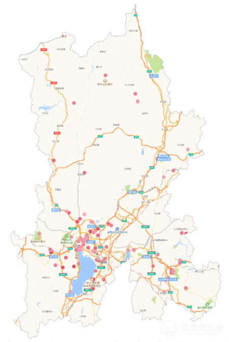 昆明市景區(qū)分布圖(顏色深淺代表銷量高低)