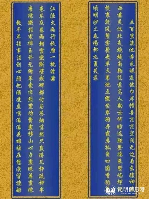 正如岳陽樓之于范仲淹,黃鶴樓之于崔灝,滕王閣之于王勃,位于滇池北部的大觀樓,也因?qū)O髯翁的《大觀樓長(zhǎng)聯(lián)》而聞名天下?!拔灏倮锏岢?,奔來眼底,披襟岸幘,喜茫??臻煙o邊……”這幅180字長(zhǎng)聯(lián)將滇池的自然美景與歷史滄桑交匯,情景相生,渾然一體,氣勢(shì)磅礴,意境高遠(yuǎn),被世人譽(yù)為“天下第一長(zhǎng)聯(lián)”。