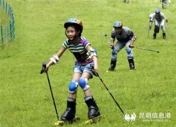 滑草場(chǎng)沿長(zhǎng)廊爬上山頭,此時(shí)只見碧綠的草地如掛毯呈現(xiàn)在眼前,到這里的游客在草地上做著各種快樂的滑翔運(yùn)動(dòng),沒有滑過雪的人都把這里當(dāng)成了旱地滑雪練習(xí)場(chǎng),膽小的選擇坐在滑輪車上,從山上一路撒野沖下山坡,一路的歡聲和笑語。膽大的則腳踏滑輪,雙手撐桿在草地上自由地飛翔,即使摔倒也不要緊,厚實(shí)的草地就像是最好的保護(hù)。