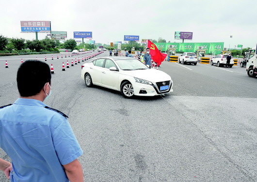 7月25日,在寧洛高速公路曹莊收費站,一輛汽車被勸返。新華社記者季春鵬攝