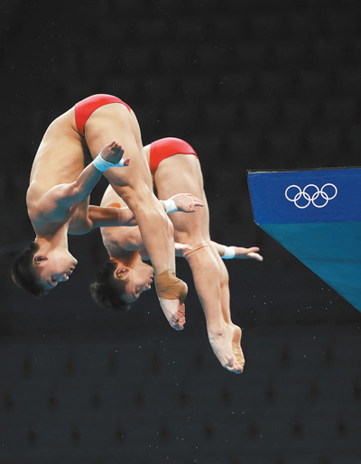 在東京賽場,他同時出戰(zhàn)男子10米臺雙人和單人兩個項目。“可能比賽興奮度不夠,輸在動作不太謹(jǐn)慎?!辈芫墢?fù)盤自己的失誤細(xì)節(jié)。