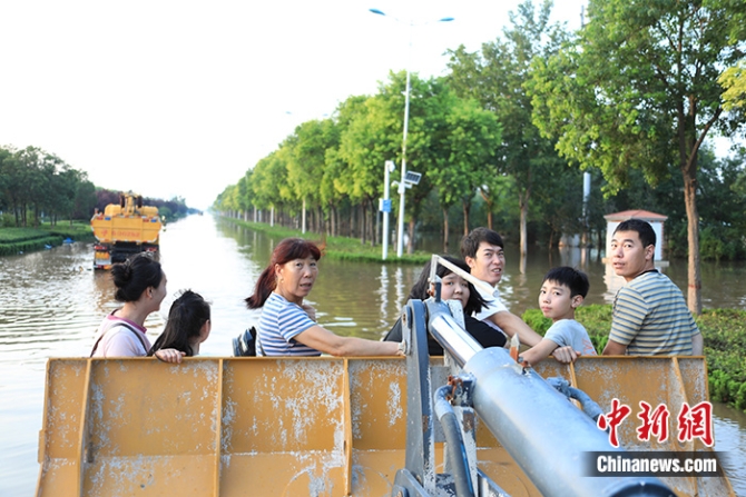 記者是在積水嚴(yán)重的新中大道北段與張家人偶遇的,這里是他們從城里返村的必經(jīng)之路。