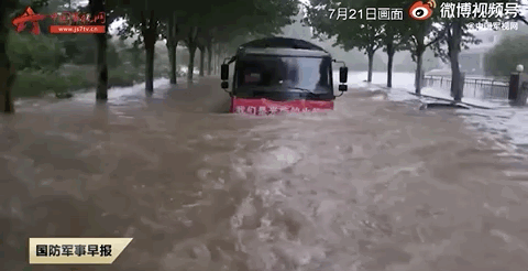 一條洪水中的“最牛軍車”視頻刷屏網(wǎng)絡(luò)
