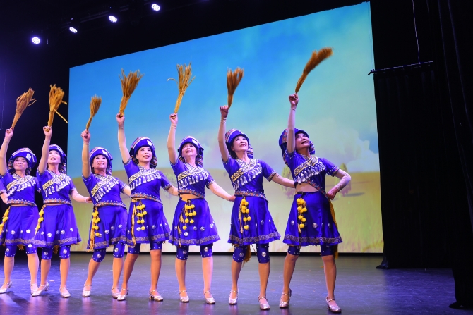 下午2點(diǎn),熱情洋溢的新疆舞《花兒為什么這樣紅》拉開了本次大賽的帷幕,緊接著,藏族舞蹈《再唱山歌給黨聽》、壯族舞蹈《金秋的喜悅》、彝族舞蹈《彝家酒歌慶豐收》等一個(gè)個(gè)精彩的舞蹈輪番上演,這些節(jié)目全部由各社區(qū)基層群眾文藝團(tuán)隊(duì)創(chuàng)作,大家圍繞“歌頌民族團(tuán)結(jié) ?展現(xiàn)民族風(fēng)情”的主題,向觀眾多角度展示了云南多元的民族文化和藝術(shù)魅力?!拔覀冇啦緛?lái)就是一個(gè)多民族聚居的地方,希望通過(guò)這樣的方式,能更好地傳遞出民族團(tuán)結(jié)精神,表達(dá)出我們愛黨愛國(guó)之情?!庇琅d路社區(qū)居民王蓓說(shuō)。