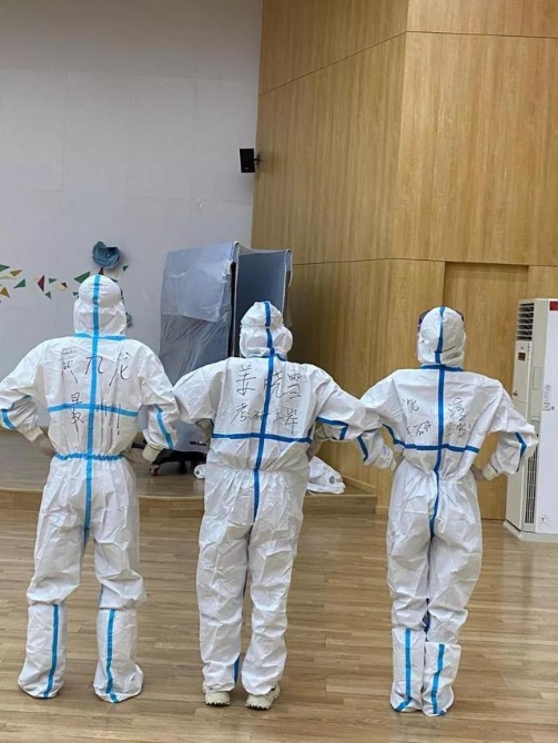 志愿者在防護服上寫上名字和“最帥”“考研上岸”等文字