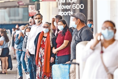 鑒于新冠肺炎感染和住院人數(shù)持續(xù)增加,美國洛杉磯縣近日開始恢復(fù)室內(nèi)公共場所戴口罩的強(qiáng)制規(guī)定。圖為在美國洛杉磯國際機(jī)場佩戴口罩的旅客人群。
