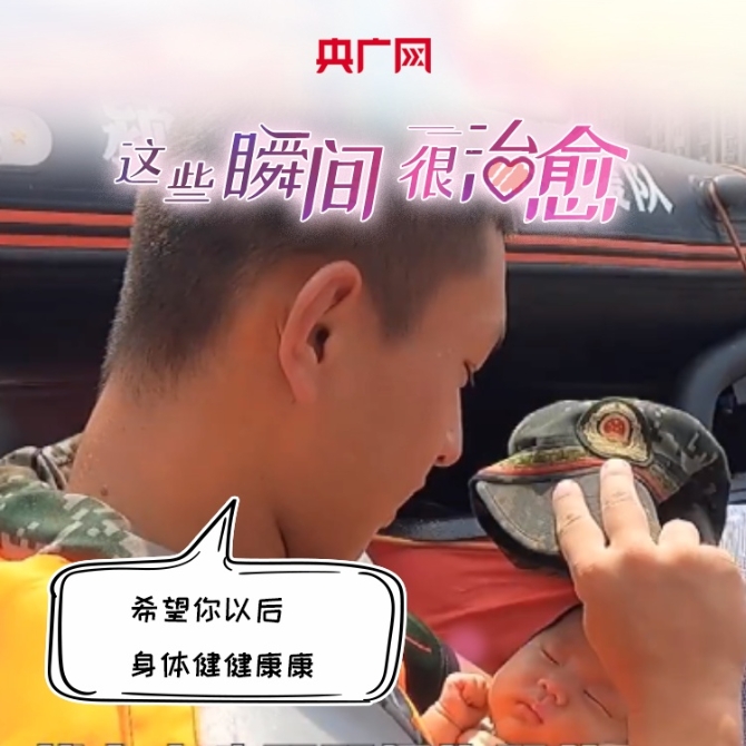 廣東潮州的“00后”武警救出“20后”滿月嬰兒,并脫下帽子為孩子遮陽。