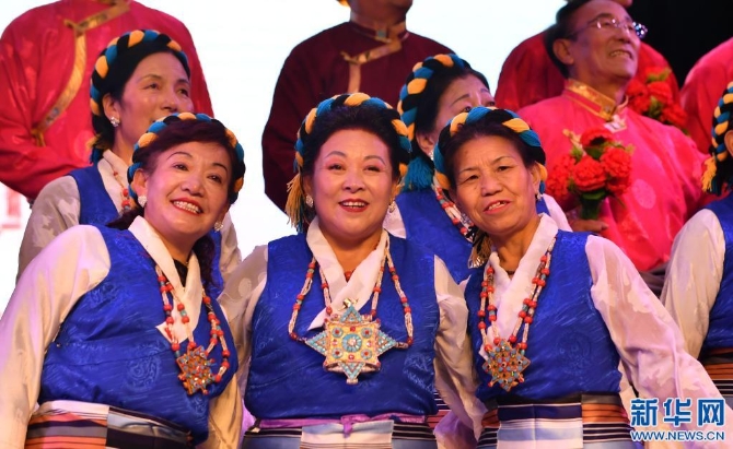 拉薩市老年文藝隊(duì)在拉薩市群眾藝術(shù)館演出(2019年12月13日攝)。 新華社記者 覺果 攝