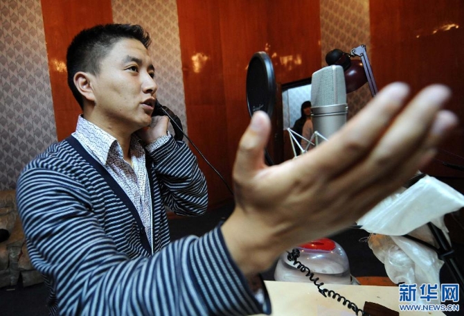 西藏電視臺(tái)藏語配音員在給電視劇配音(2009年9月29日)。新華社記者 覺果 攝