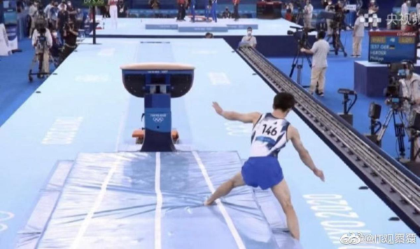 在當(dāng)晚跳馬的比賽中,在這場比賽中奪冠的日本運動員橋本出現(xiàn)重大明顯失誤,落地時一只腳出界,裁判給了14.700分;而同場比賽中穩(wěn)穩(wěn)落地的肖若騰只拿到14.900分。