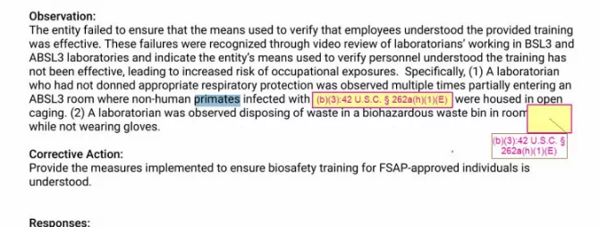 除此之外,實(shí)驗(yàn)室建筑物外表沒密封,天花板和生物安全柜都有裂縫,人員在執(zhí)行生物安全和控制措施時(shí)出現(xiàn)“系統(tǒng)性失敗”……