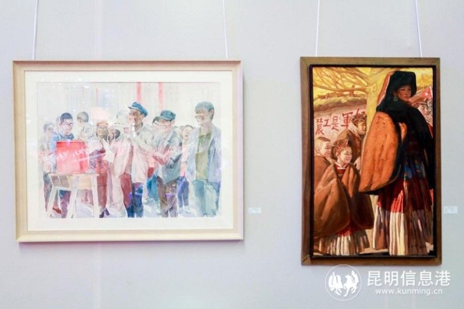 在晚會的戶外場地,一幅幅書畫作品引人注目。據(jù)了解,這是本次活動的重要內(nèi)容之一,展出的172幅作品均圍繞“一顆紅心向黨、慶祝建黨百年”這一主題創(chuàng)作而成,涵蓋文章、攝影、書畫等多類。