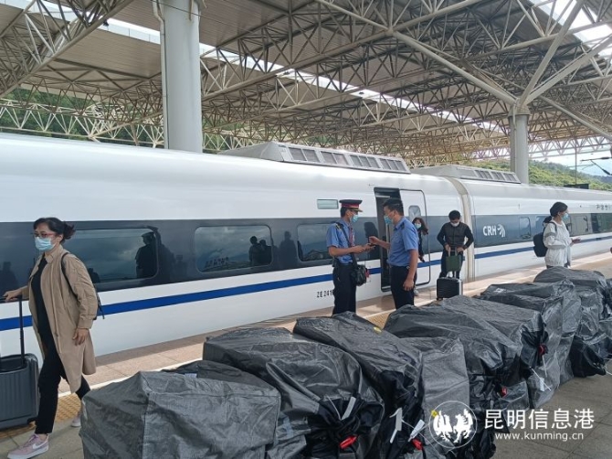 昆明信息港訊 記者上官艷君 又到一年一季云南野生菌盛產(chǎn)期,7月30日17時45分,在麗江火車站,D8794次動車裝載著78件,共計1.29噸的松茸從麗江出發(fā),3小時34分后到達(dá)昆明南站,再由昆明南站乘其它高鐵運(yùn)往全國各地。