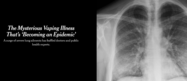圖為美國《紐約時報》在2019年9月對美國所謂的“電子煙肺炎”的報道,稱這種疾病“很神秘”