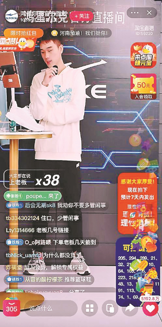 鴻星爾克淘寶直播間截屏