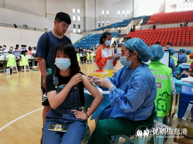 昆明信息港訊 記者段佳琪 8月2日,呈貢區(qū)12至14歲學(xué)生新冠肺炎疫苗接種工作正式啟動(dòng)。從8月2日到8月6日期間,呈貢區(qū)轄區(qū)內(nèi)符合接種條件的學(xué)生在學(xué)校的組織下、監(jiān)護(hù)人的陪同下,前往昆明市第三中學(xué)體育館臨時(shí)接種點(diǎn)接受疫苗接種。