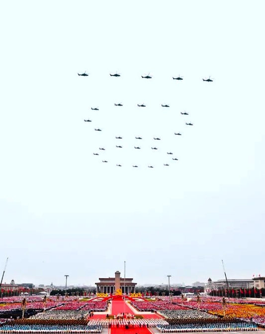 這天清晨,15架殲-20戰(zhàn)機分3個梯隊,呼嘯飛過天安門。29架新型武裝直升機組成的“100”字樣,引起人們忘情的歡呼、無限的暢想。