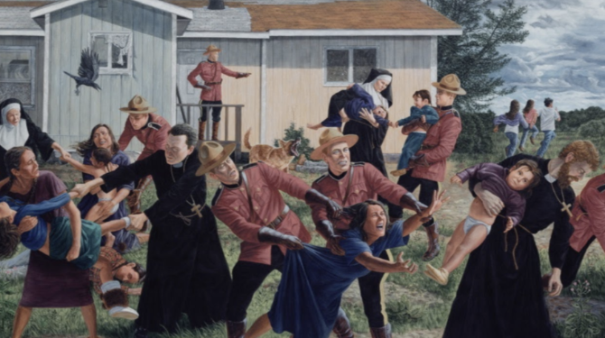 “六十年代掏空”是加拿大政府為強(qiáng)制同化原住民,在20世紀(jì)50年代至90年代,長(zhǎng)達(dá)40年的時(shí)間里實(shí)施的一項(xiàng)政策。它允許兒童福利機(jī)構(gòu)在未經(jīng)原住民同意的情況下,把幾乎所有的原住民幼兒(包括新生兒)強(qiáng)行從他們的母親身邊帶走,然后再交給歐洲裔白人的家庭撫養(yǎng)。當(dāng)?shù)卦∶裨馐芫薮笸纯嗪蛽p失,在各方面就像被掏空一樣,因此被稱之為“六十年代掏空”。