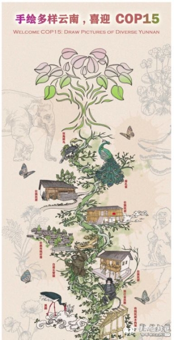 作品《手繪多樣云南,喜迎COP15》(部分)