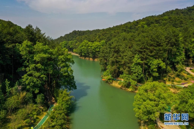 經(jīng)過生態(tài)修復(fù)后的重慶縉云山國家級自然保護區(qū)黛湖(無人機照片,2020年5月18日攝)。 新華社記者 劉潺 攝