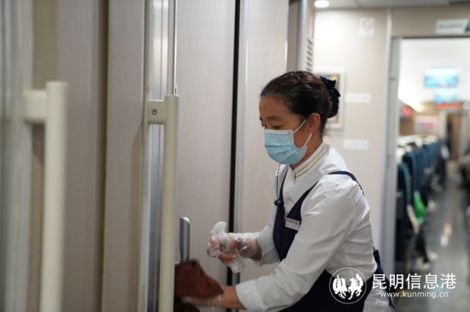 昆明局集團(tuán)對(duì)每一列抵達(dá)昆明的列車進(jìn)行全列預(yù)防性消毒工作,各車站組織相關(guān)人員進(jìn)行24小時(shí)值守,在每日作業(yè)開始前、中午、結(jié)束后分別對(duì)車站進(jìn)出站口、候車室、站臺(tái)等公共區(qū)域進(jìn)行2至3次全面消毒;定時(shí)對(duì)售取票機(jī)、電梯扶手按鈕、垃圾桶等設(shè)備進(jìn)行消毒;在進(jìn)出站口、站臺(tái)等區(qū)域設(shè)置隔離觀察區(qū),在售票窗口、檢票口、安檢、實(shí)名驗(yàn)證通道設(shè)置 “一米線”標(biāo)識(shí),為旅客營造安全、優(yōu)質(zhì)的出行環(huán)境。
