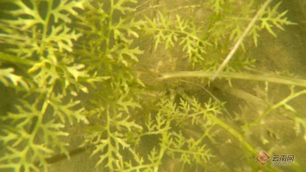 河口縣此次發(fā)現(xiàn)的野生水蕨,位于一個沒有養(yǎng)殖大型魚類的人工池中,數(shù)量不多。透過清澈的池水,可以看到青綠的水蕨長勢良好,外形美觀。