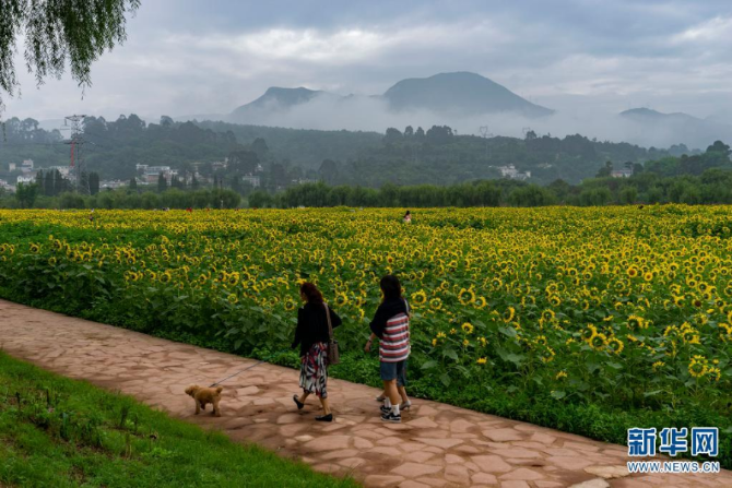 近日,云南省安寧市溫泉街道牧羊村的200多畝向日葵盛開,成為當(dāng)?shù)匾坏漓n麗的風(fēng)景。(鄭益7月31日攝影報道)