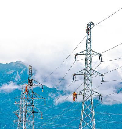 工人在527國(guó)道沿線架設(shè)線路。潘偉峰攝(影像中國(guó))