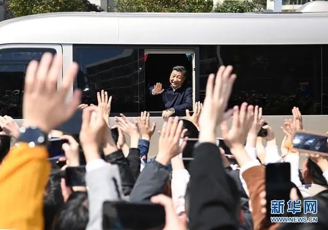2021年3月22日至25日,習(xí)近平在福建考察。這是25日上午,習(xí)近平在福州閩江學(xué)院考察時(shí),向師生們揮手致意。 圖源:新華社