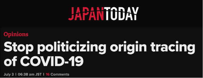 對(duì)美國(guó)將新冠病毒溯源問(wèn)題政治化的做法,“今日日本”網(wǎng)站刊發(fā)評(píng)論文章指出,新冠病毒的溯源是一個(gè)科學(xué)問(wèn)題,而不是一個(gè)地緣政治游戲。
