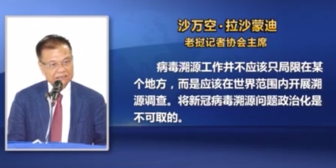 老撾記者協(xié)會主席 沙萬空·拉沙蒙迪表示,病毒溯源工作并不應該只局限在某個地方,而是應該在世界范圍內(nèi)開展溯源調(diào)查。將新冠病毒溯源問題政治化是不可取的。