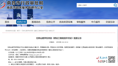 據(jù)悉,石鐘山路學(xué)校項目計劃總投資4億,計劃開工時間2021年,預(yù)計竣工時間為2023年。