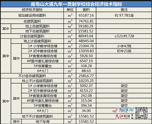 閣皂山大道九年一貫制學(xué)校綜合經(jīng)濟技術(shù)指標