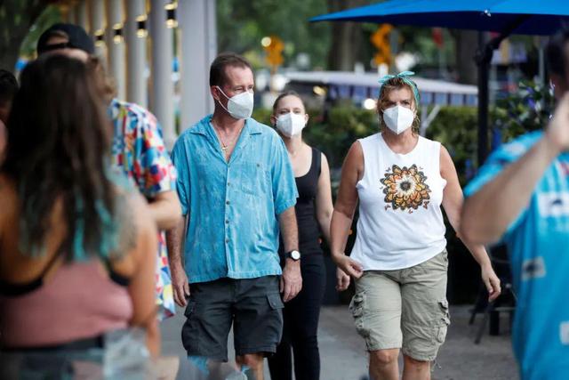 8月6日,人們戴口罩走在美國佛羅里達(dá)州圣彼得斯堡街頭。新華社/路透
