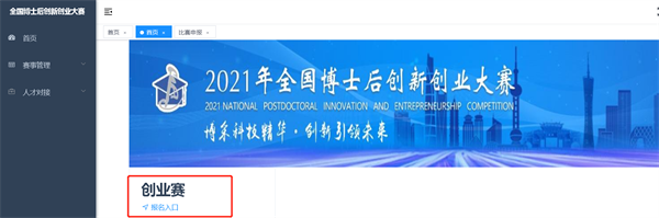 第一步:登錄2021年全國(guó)博士后創(chuàng)新創(chuàng)業(yè)大賽官方網(wǎng)站