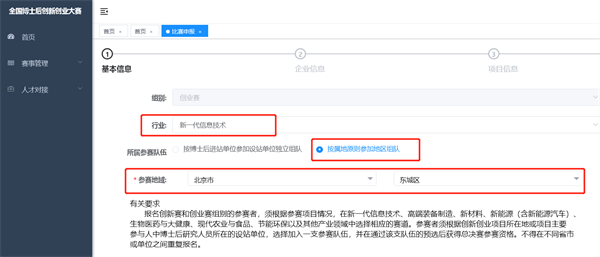 (上圖為“創(chuàng)業(yè)賽”基本信息及企業(yè)信息申報(bào)頁(yè)面)
