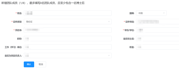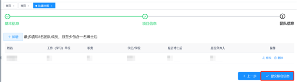 第十步:填寫團(tuán)隊(duì)成員信息