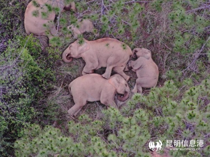 民警用無人機(jī)拍下的大象睡覺畫面