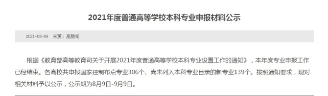 本科專業(yè)申報材料公示》
