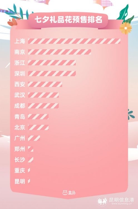 在買花這件事上,包郵區(qū)的“走心”指數(shù)在全國名列前茅。數(shù)據(jù)顯示,鮮花預(yù)售最多的城市前三名分別是:上海、南京、杭州。昆明因為坐擁全國最大的鮮花交易市場,對花的消費已常態(tài)化,所以七夕鮮花漲幅不大。