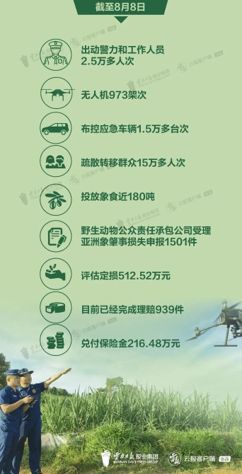 累計賠付亞洲象肇事?lián)p失1.73億元。