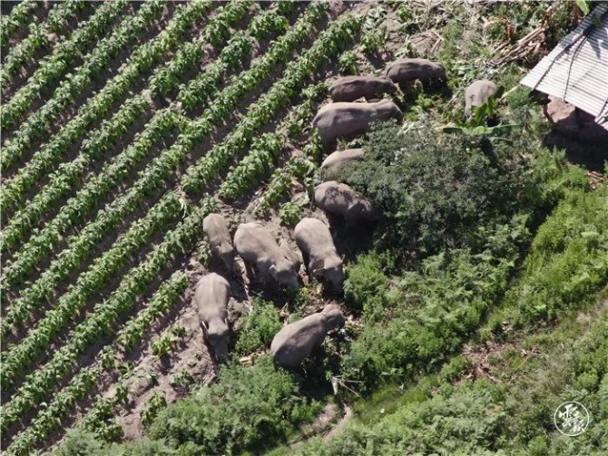 6月26日前后,象群在峨山縣富良棚鄉(xiāng)活動覓食。