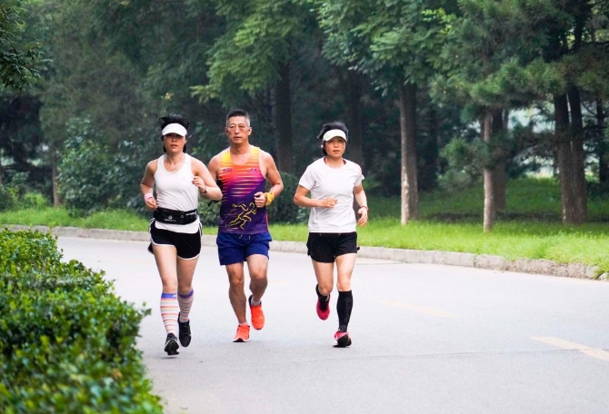 河北省遵化市的長跑愛好者在公園晨練。新華社發(fā) 劉滿倉攝